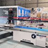Sliding table saw is constructed with a flat and durable sliding table to enable stable panel feeding. The unit performs 90-degree panel cuts with precision using a 300×30 mm main blade and 120×20 mm scoring blade. Driven by motors of 5.5 kW and 1.1 kW respectively, both blades operate with coordinated speed and balance. This structure supports accurate edge trimming of panels up to 80 mm in thickness and lengths up to 3200 mm. The platform provides structural support that enables tight dimensional control, fitting professional requirements in operations involving woodworking cnc machine or cnc router setups in commercial woodworking environments. It reduces manual correction and facilitates consistent alignment of materials before downstream automation.
